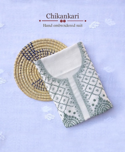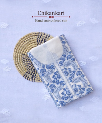 Chanderi Pure Chikankari Hand Embroidered Suit – Blue