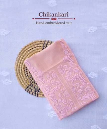 Chanderi Pure Chikankari Hand Embroidered Suit – Baby Pink
