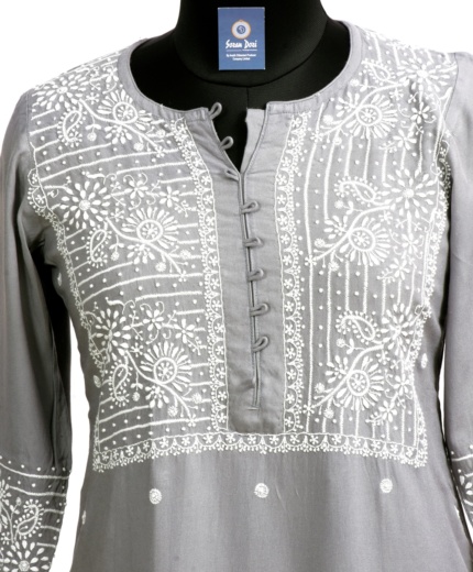 Rayon Kurti – White – Pattern Floral – Embroidery Thread – Peach