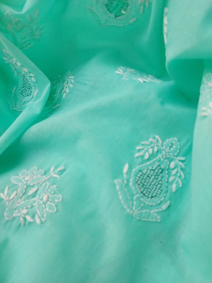 Cotton 3pc Sea Green Suit With Pearl Highlight